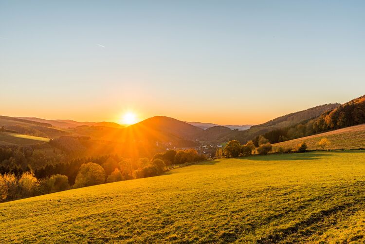 Zum Sonnenuntergang erreichen wir einen ausgewählten Aussichtspunkt. Während die Sonne hinter den Hügeln versinkt und der Himmel in warmen Farben leuchtet, genießen wir gemeinsam ein kühles Getränk – mit weitem Blick über das Sauerland.